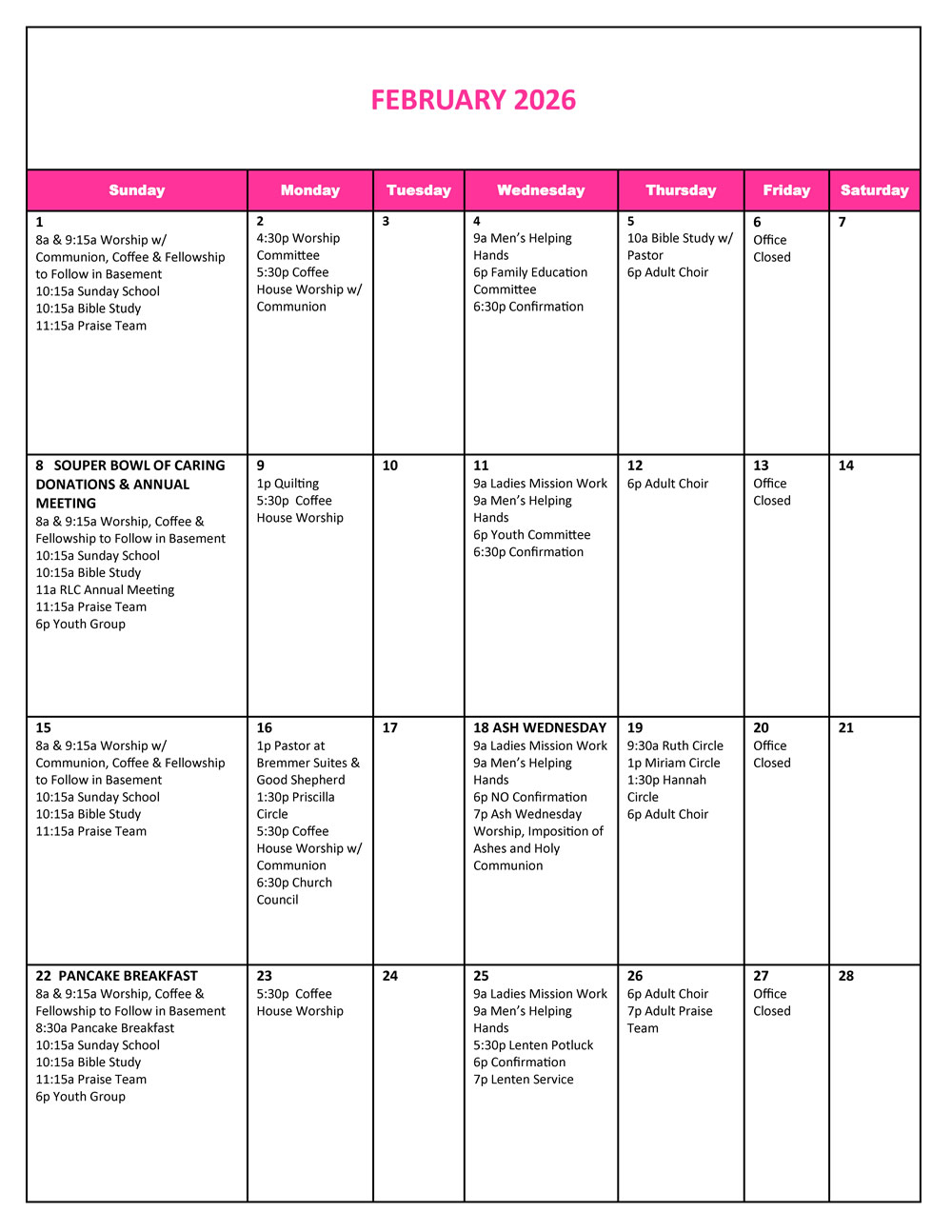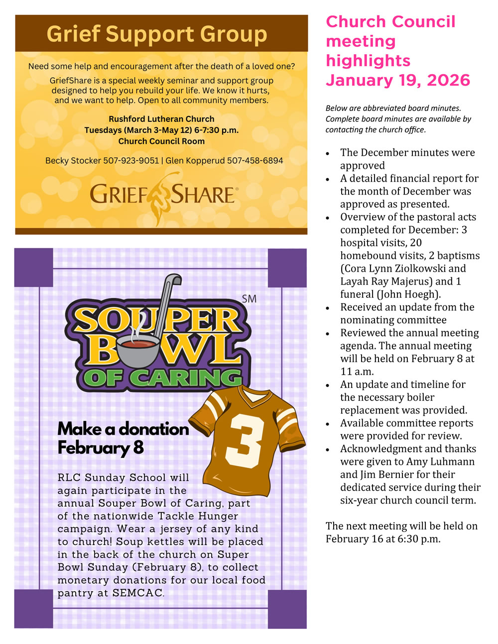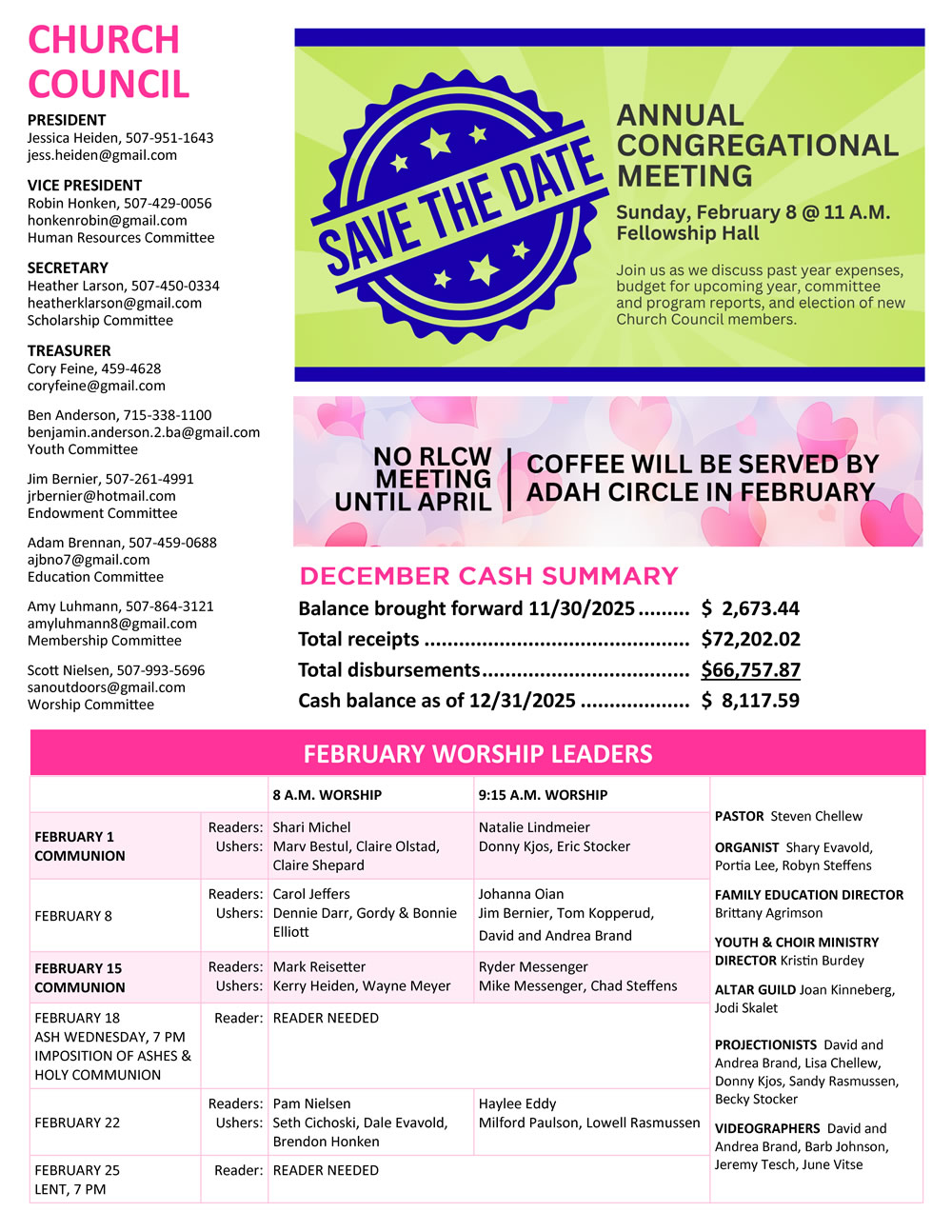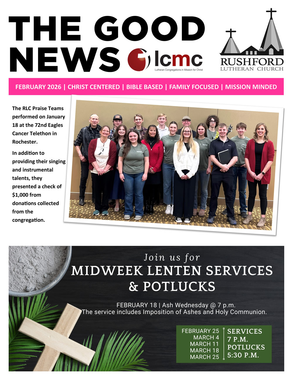 February Newsletter Rushford Lutheran Church · January 27, 2026 · Download the February 2026 Newsletter