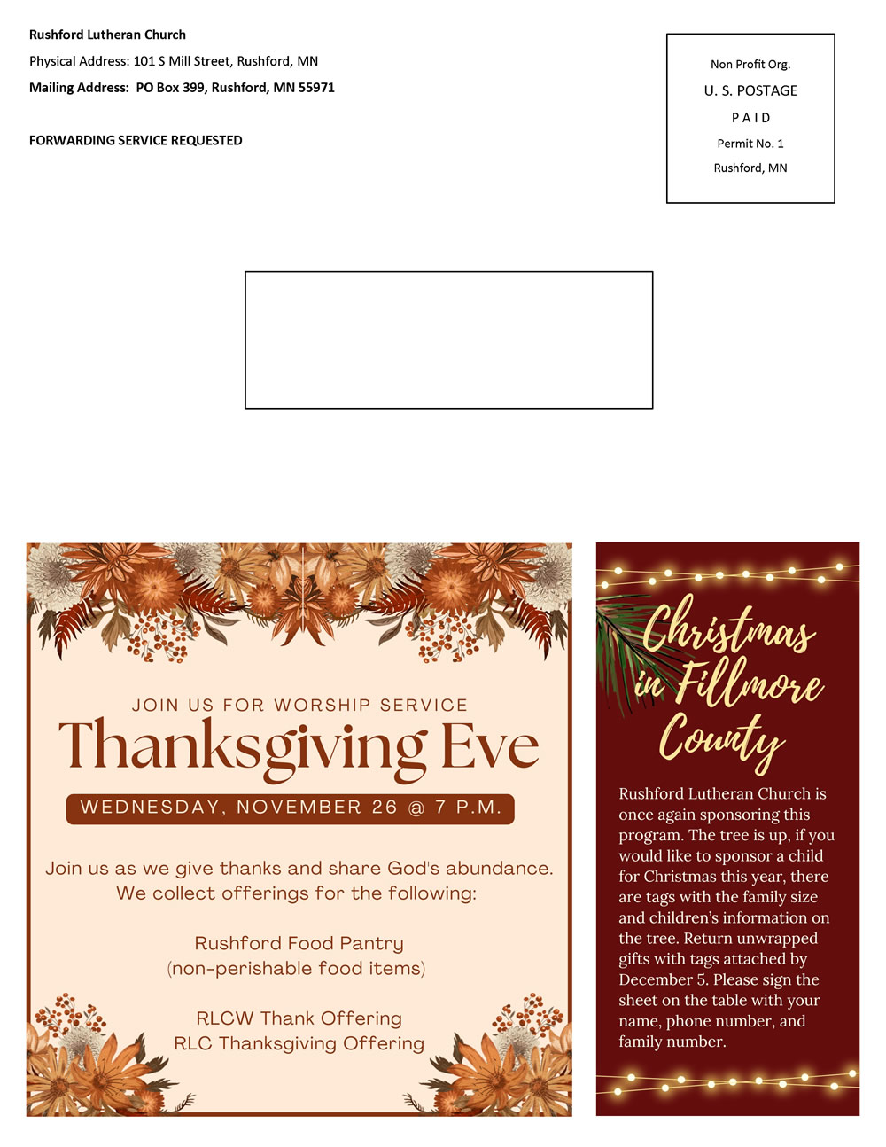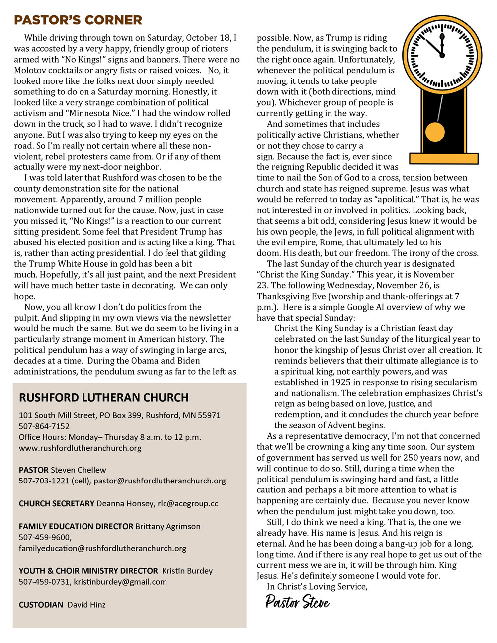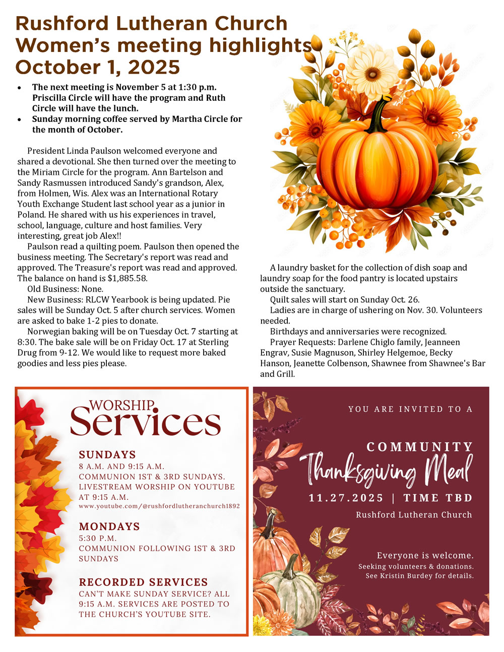 November Newsletter Rushford Lutheran Church · October 31, 2025 · Download the November 2025 Newsletter Download the November 2025 Newsletter