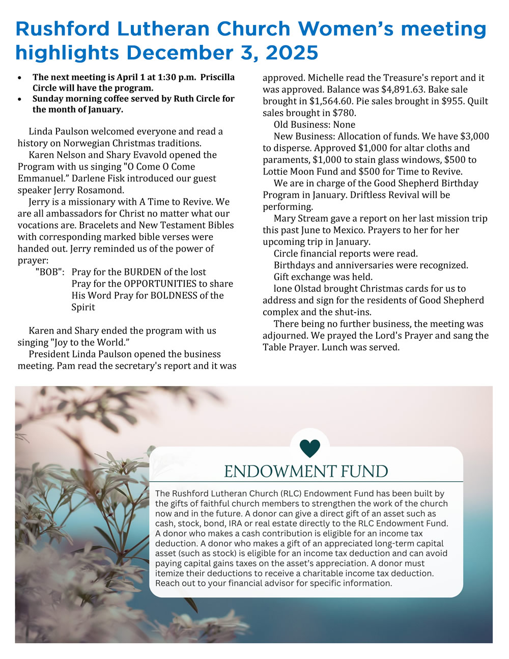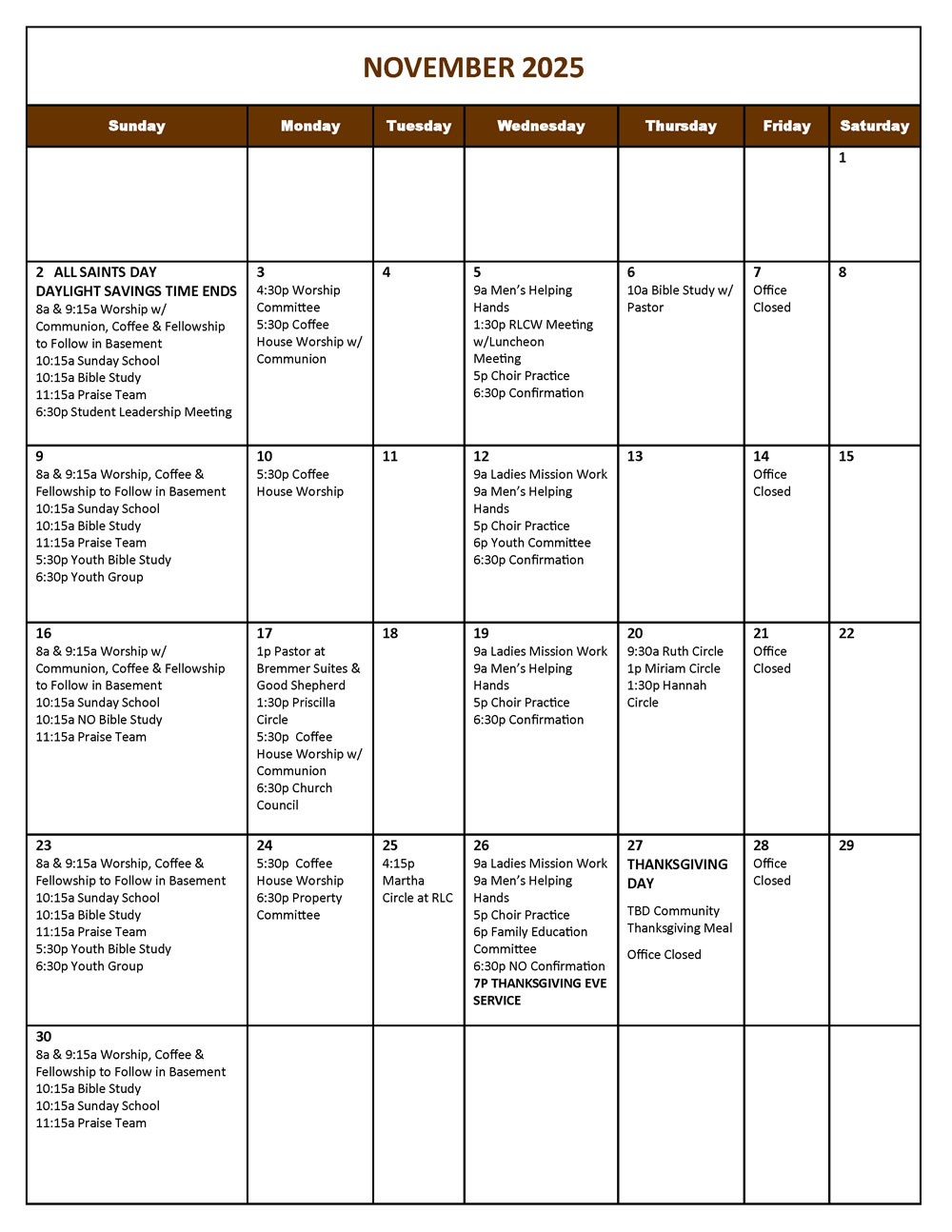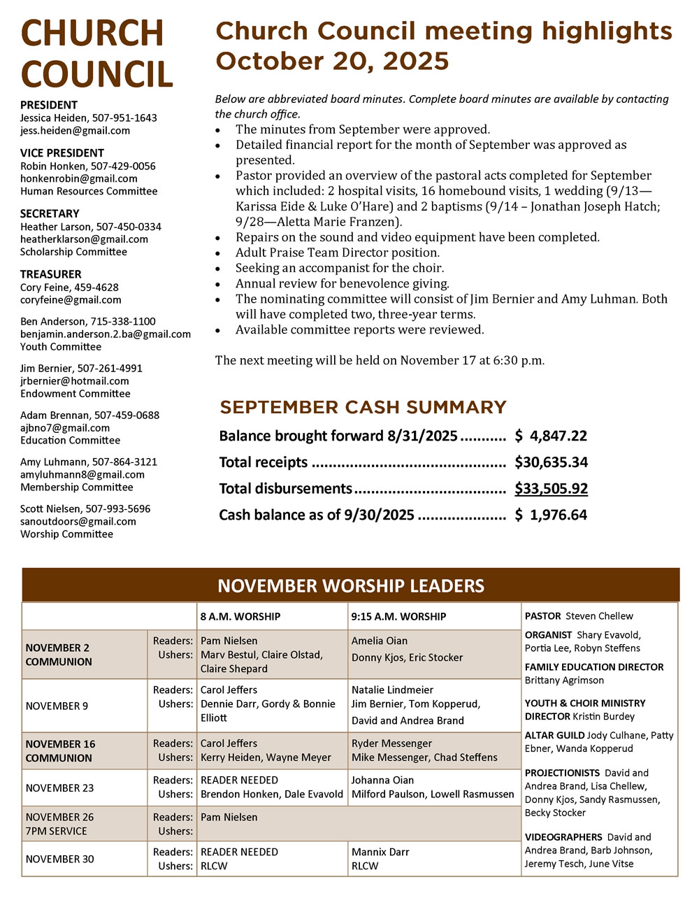 November Newsletter Rushford Lutheran Church · October 31, 2025 · Download the November 2025 Newsletter Download the November 2025 Newsletter